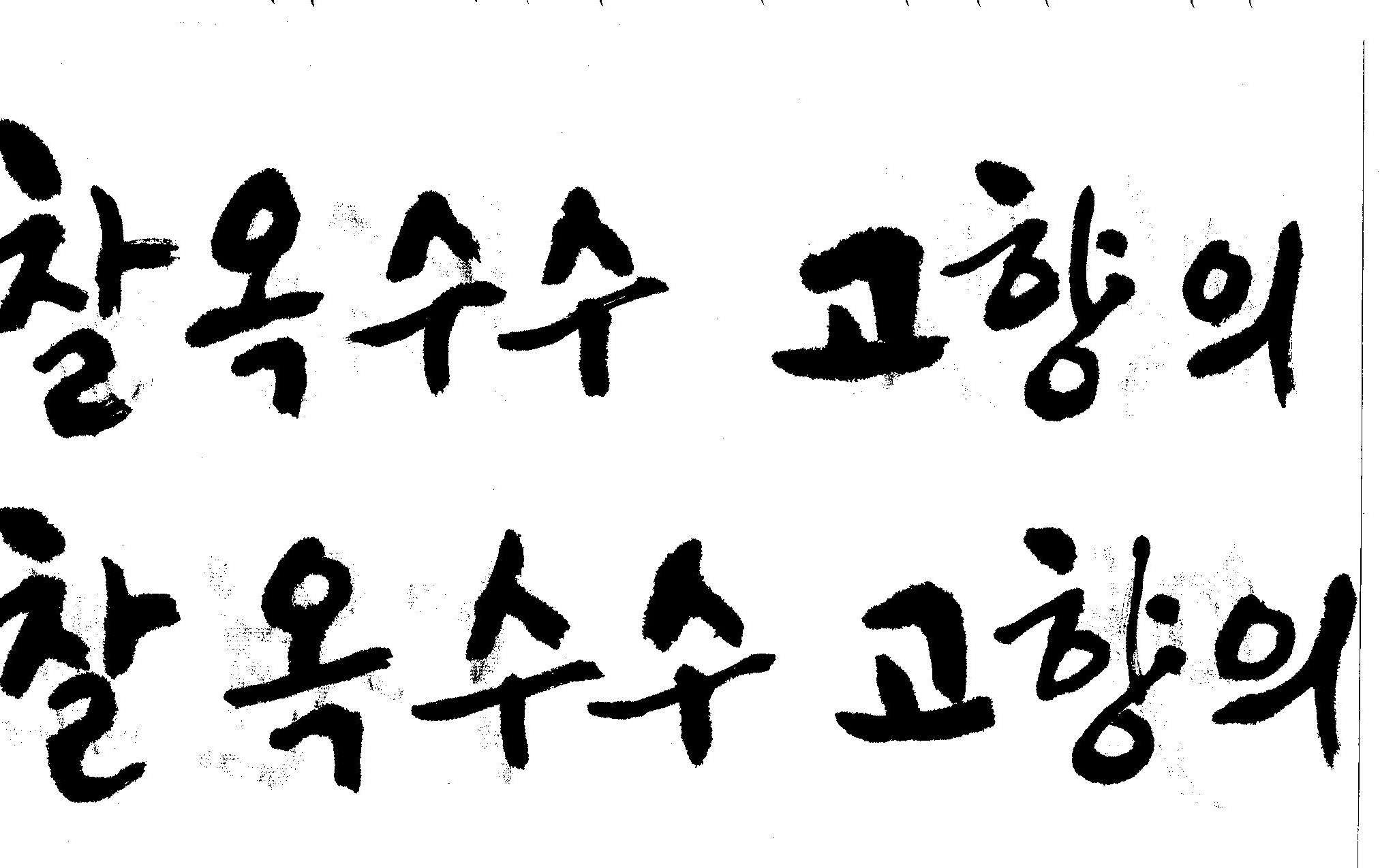 캘리고수님.. 캘리 부탁드립니다. 김철호 일반 1 11290 2008.10.31 15:44 > > 강원도 > 찰옥수수 > 고향의 맛 > > 이상의 문구 입니다. > 캘리 고수님들 시간되시면 도움 부탁드립니다.. > 유용하게 쓰시길 , 스캔이 깨끗하지 못해서 수고 좀 하셔야 겠네요.. "맛"이 라는 글자가 잘 않나와서 따로 올립니다.